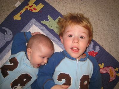 Yep, after fighting bronchitis for over a week, Gavin got sick with a nasty cough, slight fever, and congestion. Justin stayed home with him on Monday and I stayed home with him on Tuesday and today. Turns out he also has an ear infection. Fun.