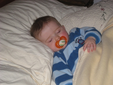 So we’re finally home and we fell right into our usual routine again. We put the kids to bed and HALLELUJAH! that child chirped a bit in his sleep a few times, but he SLEPT THROUGH THE NIGHT. And has done so every night since!!!! WEEEEEEEEEE!