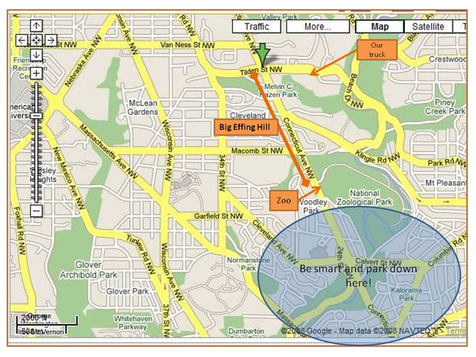 Oh, I will leave you with this: should you ever drive to the National Zoo and can’t get a spot in the lot, please please please for the love of Beaujolais, park south (downhill) from the Zoo. Somehow the National Zoo defies all laws of physics and seems to be uphill in all directions. Make it easy on yourself and walk downhill to your car after all that hiking. Your hips and calves will thank you (and me).
