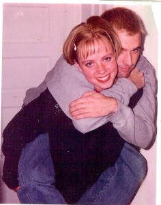 Fast-forward to August 27, 1998. My roommate and I are in a campus bar on “Ladies Night” during the first week of classes. We’re busy waving to friends, dancing, and drinking. We bump into Justin and his friends (uh, I actually can’t remember that he was there with anyone, but I’m pretty sure that he was). My roomie and Justin recognize each other because they have a music history/theory/la-la class together and her still-drunk butt tripped over his desk earlier that morning because she and I had been at Penny Drafts the previous night. She introduces us and the rest, as they say, is history.