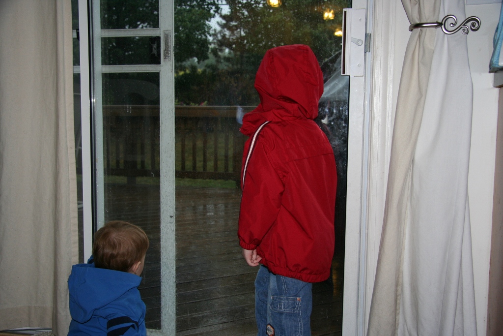 This morning I felt calmer. It had started raining during the night and really cooled things off. I got Gavin ready and to school with a lot less hassle than he had been giving me all week. Cooper was so cute and sat and watched the rain for 20 minutes before playing with his toys, giving me a good jump on my work. I laid him down right at noon and he’s just now waking up, 3-1/2 hours later. My boss IM’d me and told me that even if Cooper’s well enough for school tomorrow, to work from home again instead of sitting in bad holiday traffic. I was able to make some brownies to bring to my friends that I will try to take over there on my way to get Gavin (or may wait till tomorrow since it’s getting late). And even though I neglected to get copies of Gavin’s immunizations to the county Child Find office for his Speech/Auditory IEP (maybe because I don’t recall them mentioning it and there wasn’t a sheet in that 2-inch high pile of paperwork that mentioned it, either), I had no issues with the pediatrician’s office faxing it over there. And the Speech Therapist reassured me that she usually doesn’t begin speech services until at least the second week of school, so I still have time to get his schedule coordinated with her. Last, but not least, Justin said he’s been having a great time at his Apple training sessions and says he’s had some really positive discussions with people about all sorts of things, and I think he’s secretly excited to be in such a geeky environment with a bunch of other Apple geeks.